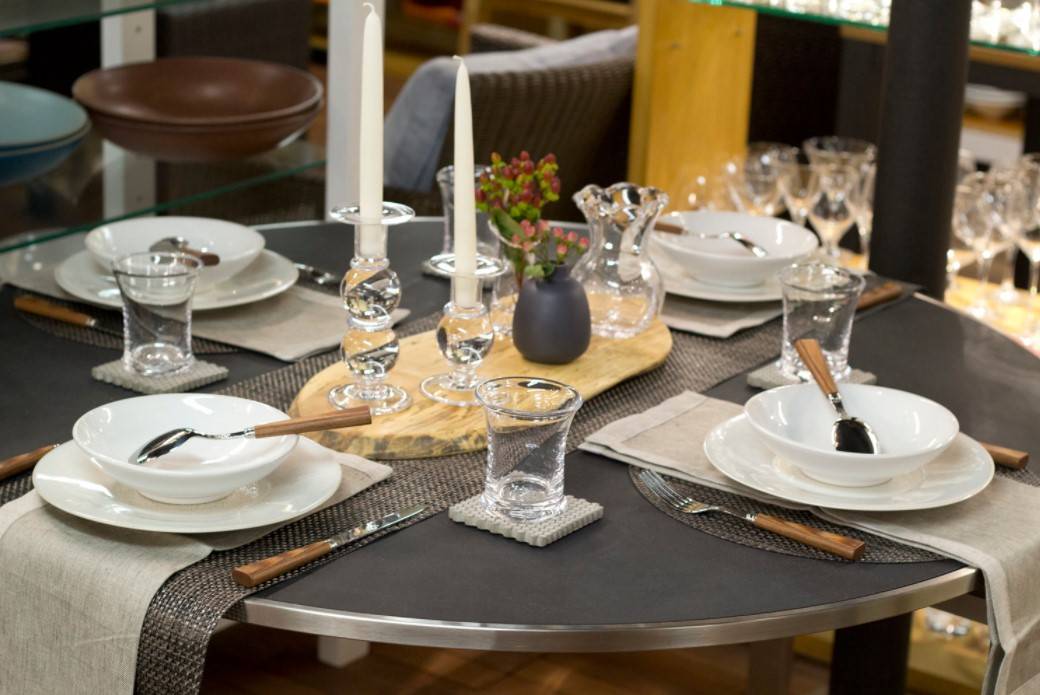 Расстановка тарелок и приборов остаётся неизменной во всех вариантах.