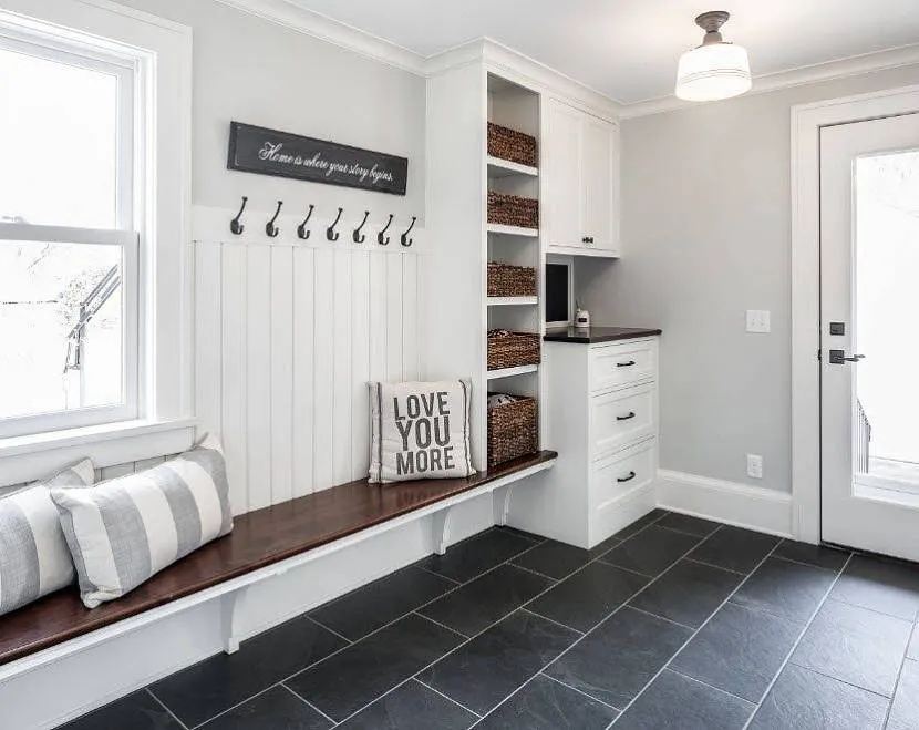 - Практичный цвет, который относится к неяркой гамме, к таким относятся серый, песочный или черный. Вариант подойдет для прихожей, где иногда может возникать грязь и мокрота.