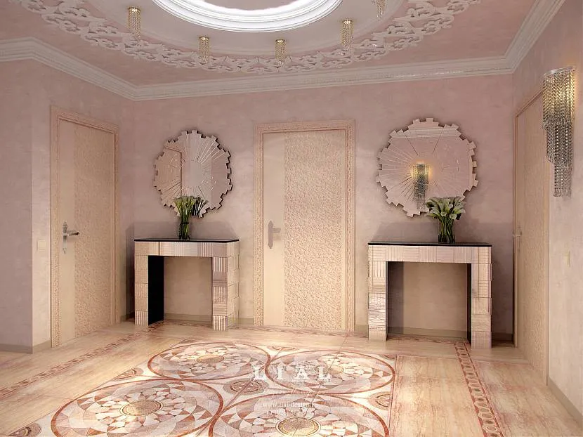 Этот роскошный стиль допускаются более смелые идеи и нестандартные решения. Он может иметь разный уровень потолка, лепнину, фактурные стены и так далее.