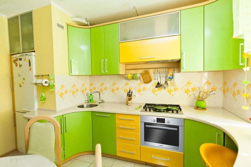 Удачный пример комбинирования ярких оттенков кухонного гарнитура и стен