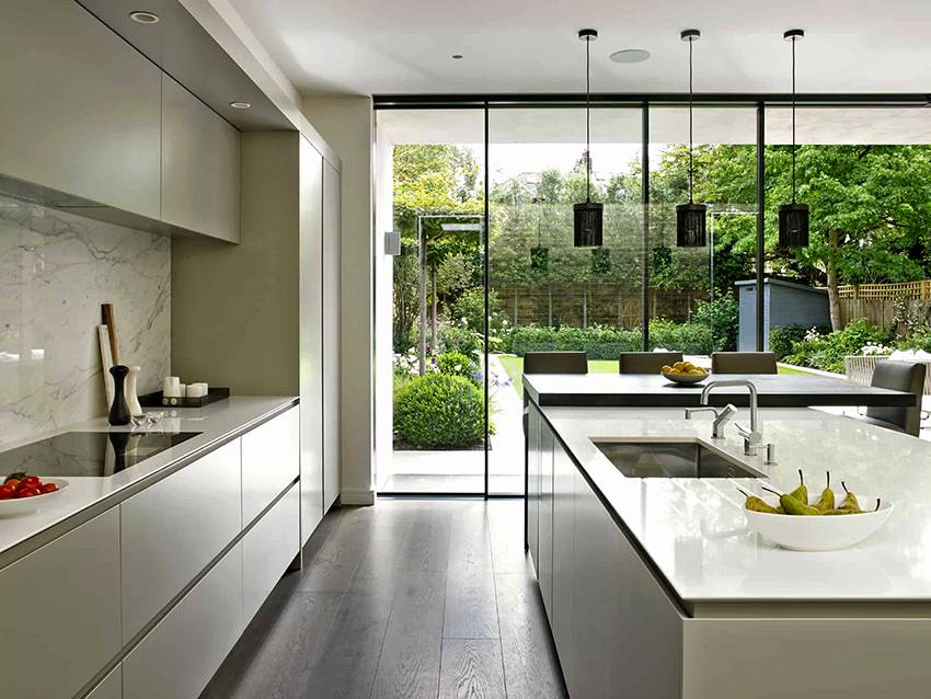 - Прямые линейные формы дисциплинируют – нет множества систем для хранения бесполезных неиспользуемых вещей и просроченных продуктов, хозяева покупают только необходимое, и своевременно избавляются от хлама.