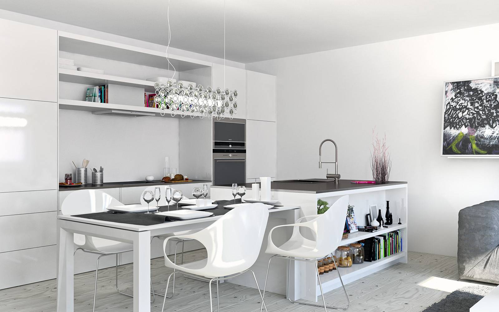 Чтобы светлая комната не выглядела скучно и монотонно, нужно выбирать сочетание нескольких цветов, близких по тону, которое бы отражали выбранную стилистику. В качестве акцентирующих пятен композиции можно добавить яркие нотки в виде оригинального фартука, красивых штор, притягивающей взгляд столешницы.