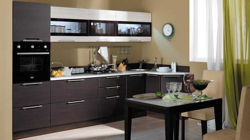 Такой вариант мебели подходит, практически под любой стиль, как маленьких, так и просторных кухонь. Единственная планировка, где он выглядит неуместно, это кухня-пенал. Такая мебель будет визуально удлинять, и без того узкое помещение.