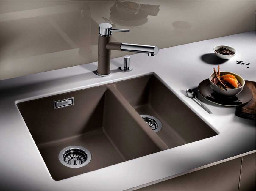 Походит для любого стиля, современного и классического. Особенно популярны мойки из мраморной и гранитной крошки.