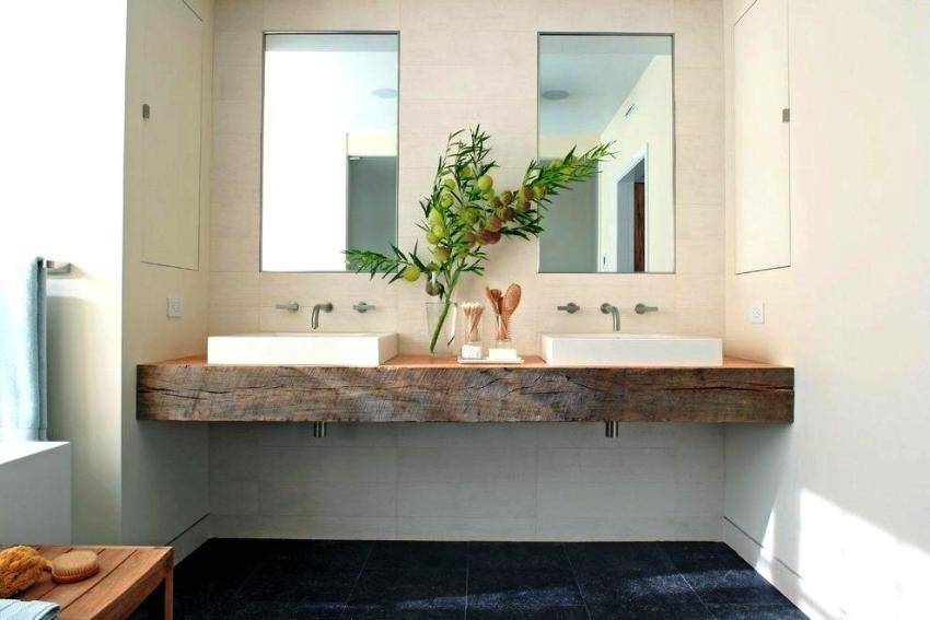 - Столешницы в ванную под раковину из дерева следует промасливать. Для этого необходимо применять специальное масло. Перед втиранием дерево нужно нагреть до теплого состояния.