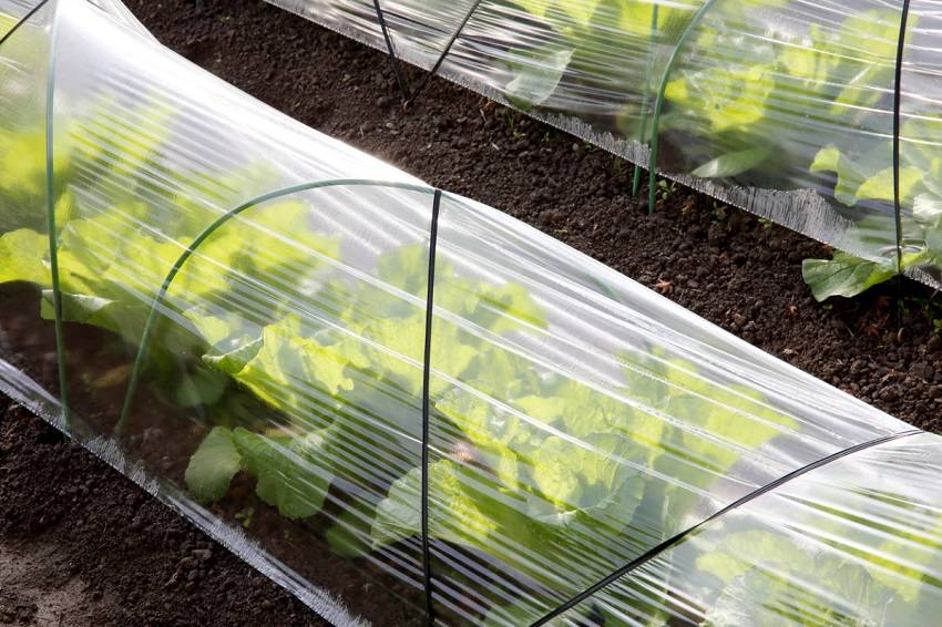 Парник из дуг, покрытый целлофановой пленкой