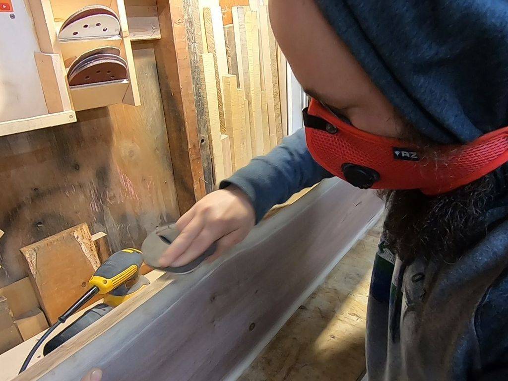 Ошкуриваем доску грубой наждачкой или шкуркой, чтобы поверхность была максимально гладкой и без шероховатостей. Также вы убираете грязь и пыль накопленную на доске, если она не новая, которая успела впитаться в верхний слой дерева.
