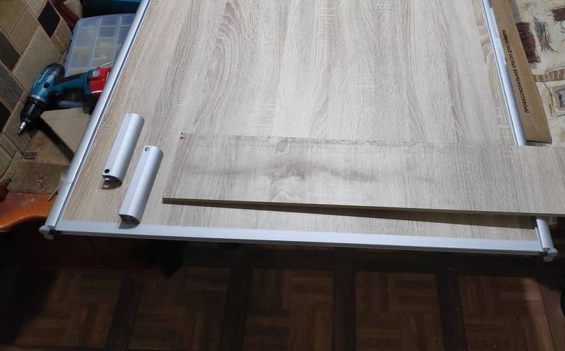Значить и боковой профиль, и вставку нужно подпилить на (2300-2210)=90мм, воспроизвести боковые отверстия для соединения с горизонтальным профилем, регулировки, которые остались на обрезках
