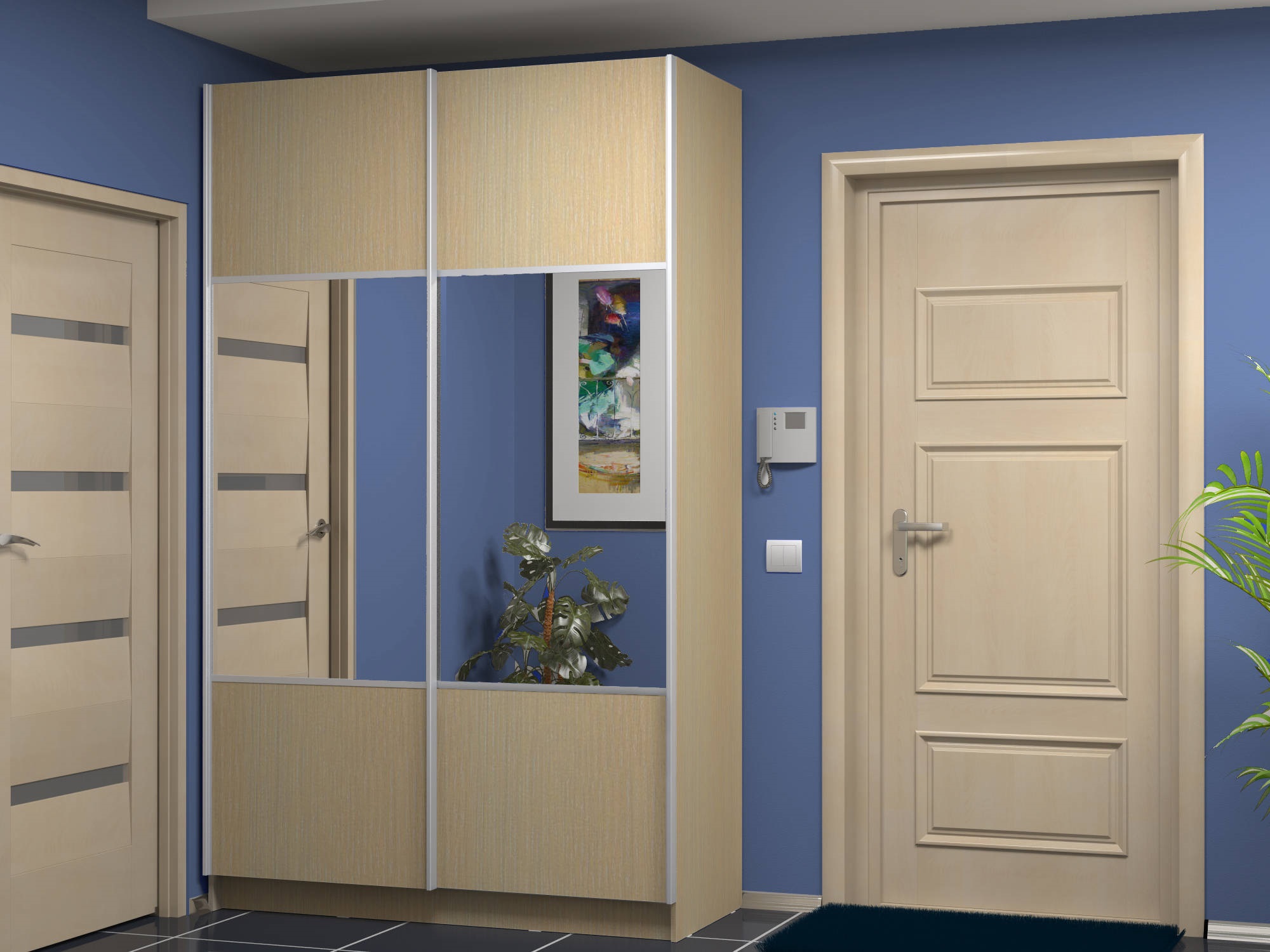 Количество дверей зависит от ширины вашего шкафа, но минимум их две. Если Вы еще не определились с количеством дверей, можете почитать эту статью.