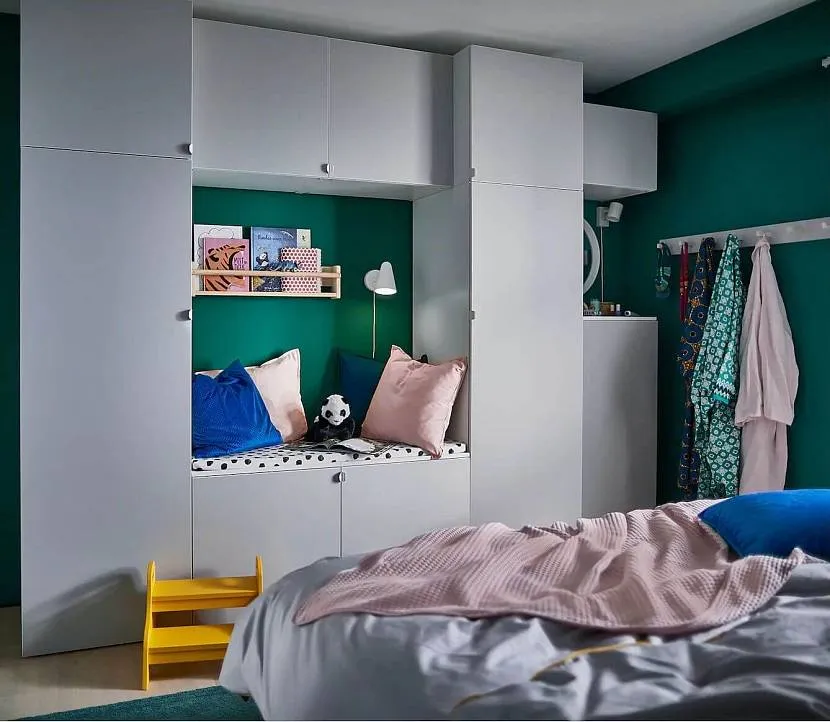 Гардероб Пакс состоит из отдельных модулей, при помощи которых обустроено место для отдыха и чтения книгИсточник domoholic.ru