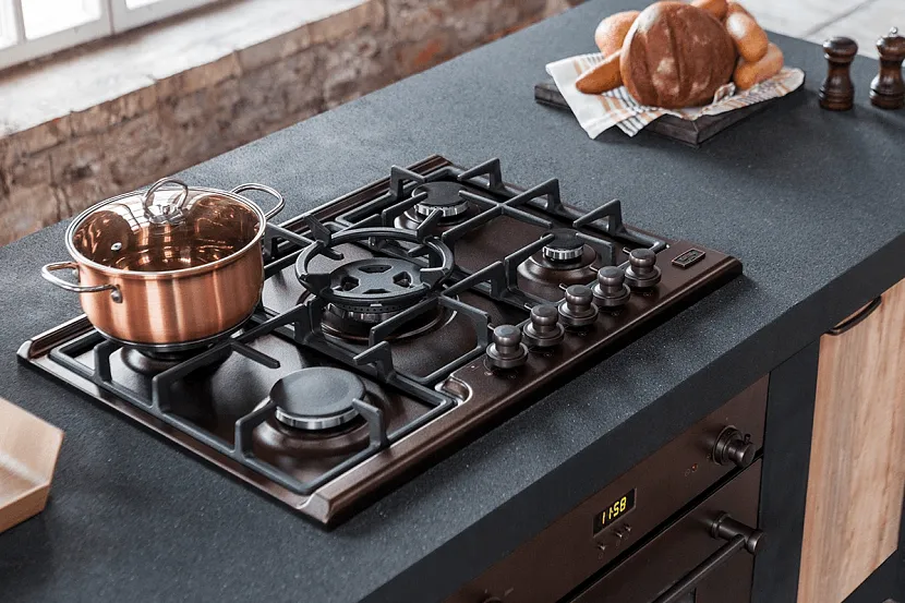 Панель может быть частью прибора – кухонной или газовой плиты. Хотя обычно применяется отдельно расположенная техника, встроенная в столешницу.