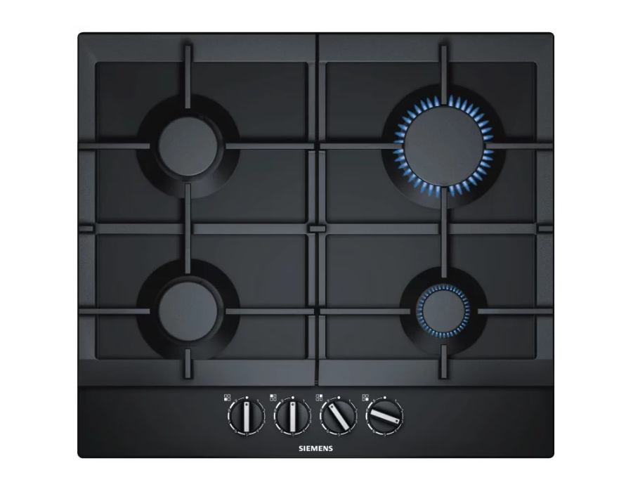 С чем у немецких производителей никогда не возникает проблем, так это с дизайном и качеством сборки. Данное утверждение в очередной раз доказала газовая панель Siemens EC6A6PB90R. Здесь есть четыре конфорки, одна из которых большая, две средних и одна поменьше, причём поворотные переключатели позволяют плавно регулировать пламя на каждой из них в рамках 9 режимов.
