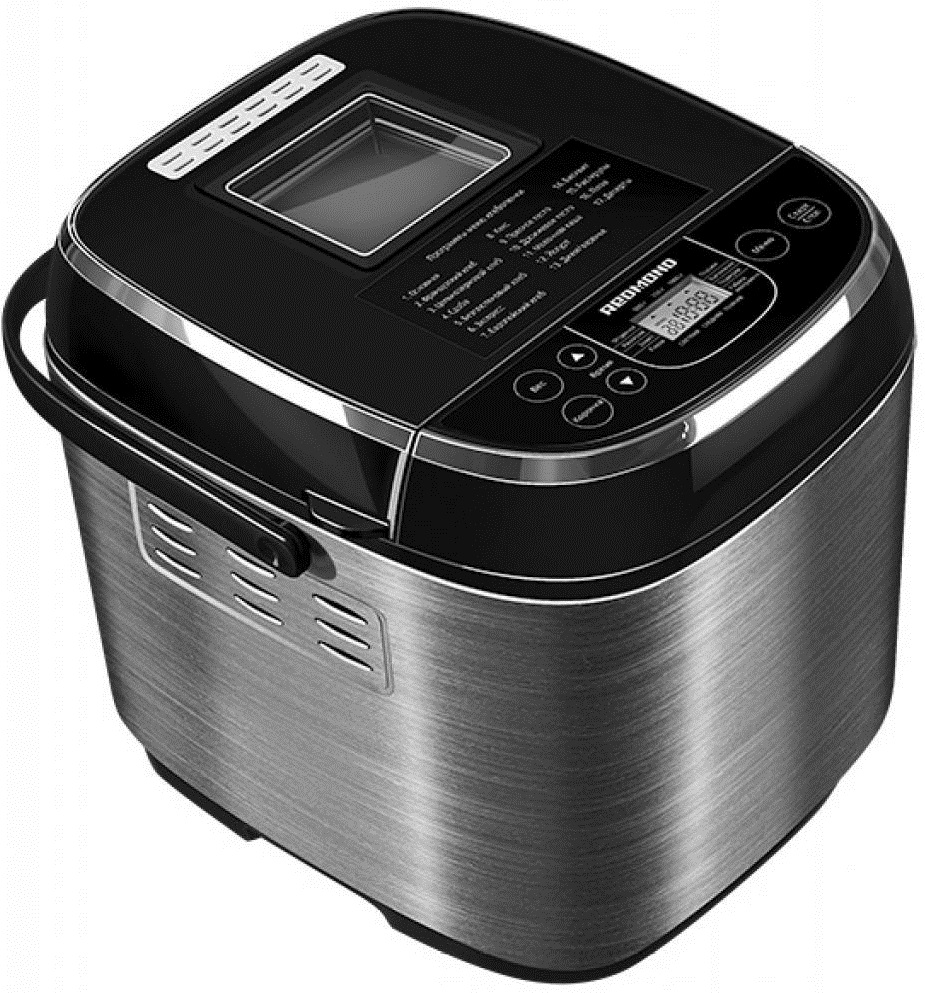 Brayer BR2701 имеет прочный корпус и встроенную защиту от перегрева. Время выпечки регулируется, есть ускоренные программы. Надежная механическая панель управления гарантирует простоту настройки, а дисплей с подсветкой – полный контроль над процессом выпекания. Недостаток модели связан с особенностями конструкции – из-за двух тестомесов буханку трудно вынимать из ведерка.