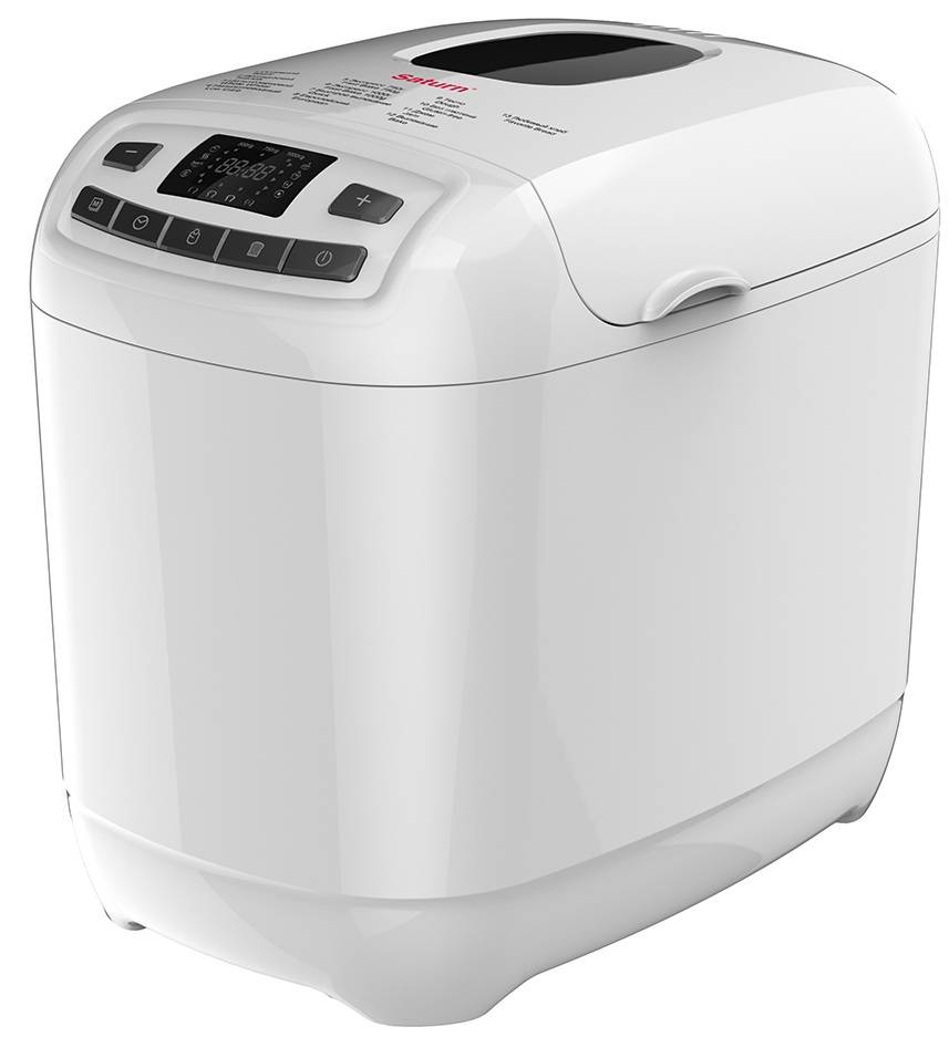 Модель обладает мощностью 800 Ватт и позволяет приготовить хлеб весом 750 грамм или 1,3 килограмма. Хлебопечка отличается качественным антипригарным покрытием, благодаря чему исключается даже малейший риск пригорания. Тип управления является кнопочным, но при этом вся нужная информация отображена на монохромном жидкокристаллическом дисплее. Предполагается возможность отсрочить запуск до 13 часов.