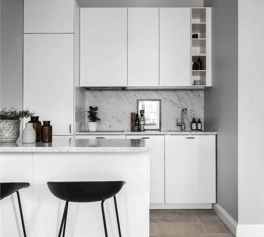 Однако при такой планировке вряд ли найдется место для обеденной группы. Поэтому она идеально подойдет для маленькой кухни, если обеденный стол располагается в гостиной.