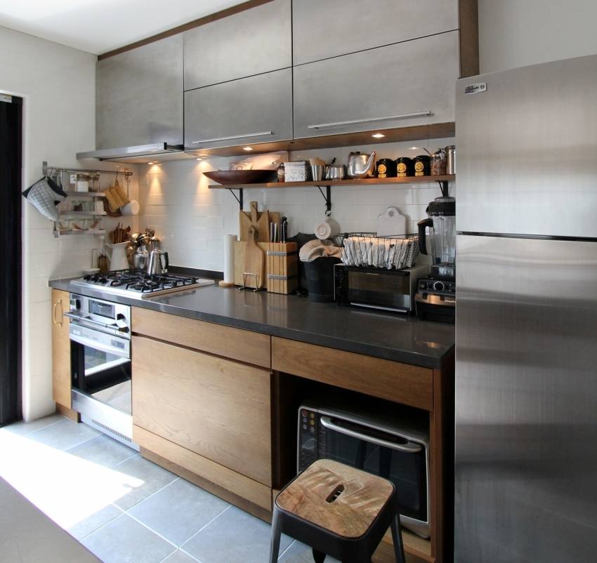Еще один интересный вариант размещения мебели на маленькой кухне – двухрядная планировка. В этом случае мебель располагается вдоль противоположных стен, чаще всего разделяя их по предназначению: с одной стороны занимают поверхности для приготовления пищи, а с другой – располагаются обеденная и зона отдыха.