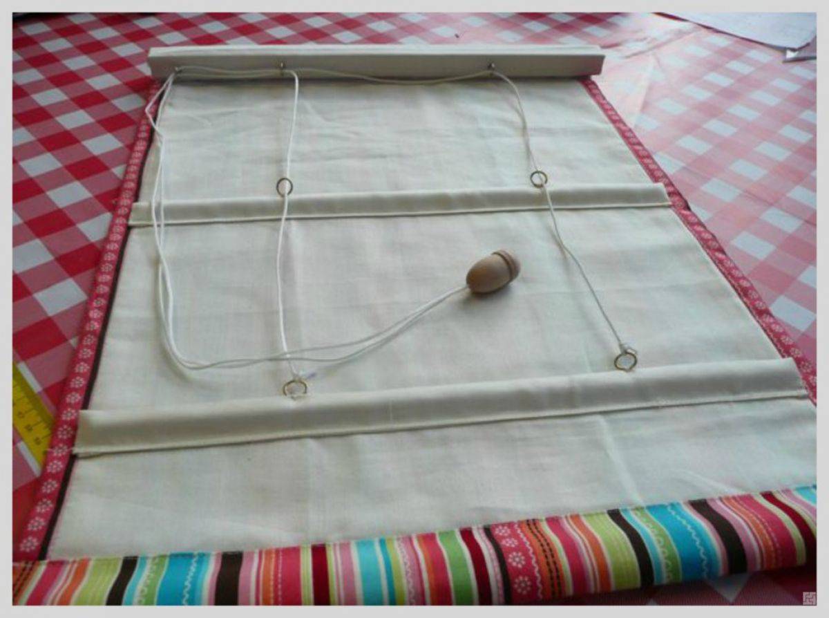 - В конструкцию римской шторы входит и специальный механизм, благодаря которому штора поднимается вверх и складывается. Механизм можно изготовить самостоятельно с помощью различных колец, шнура и клипс. Как вариант, механизм можно приобрести в магазине фурнитуры.