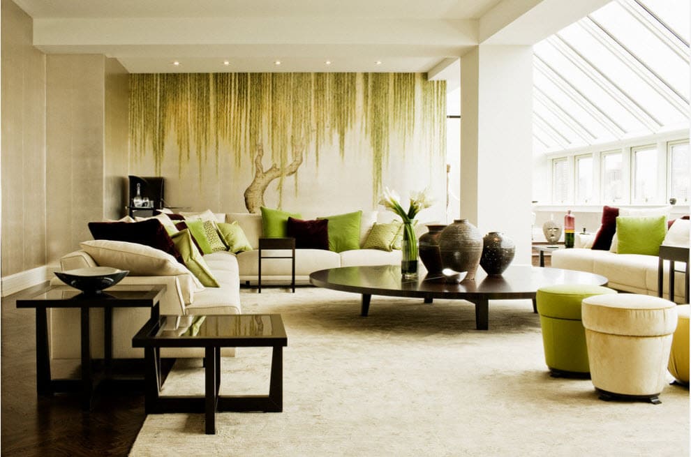 Там они будут смотреться наиболее гармонично. Так же, для достижения равновесия по обе стороны от ниши можно расположить два одинаковых предмета, например, пару стульев.