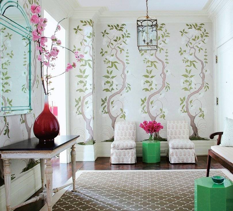Если расписывается гостиная, то желательно выбирать пейзажи, красивые цветы, деревья. Конечно, оригинально будут смотреться горы, хвойные леса, но нарисовать их аккуратно под силу профессионалу.
