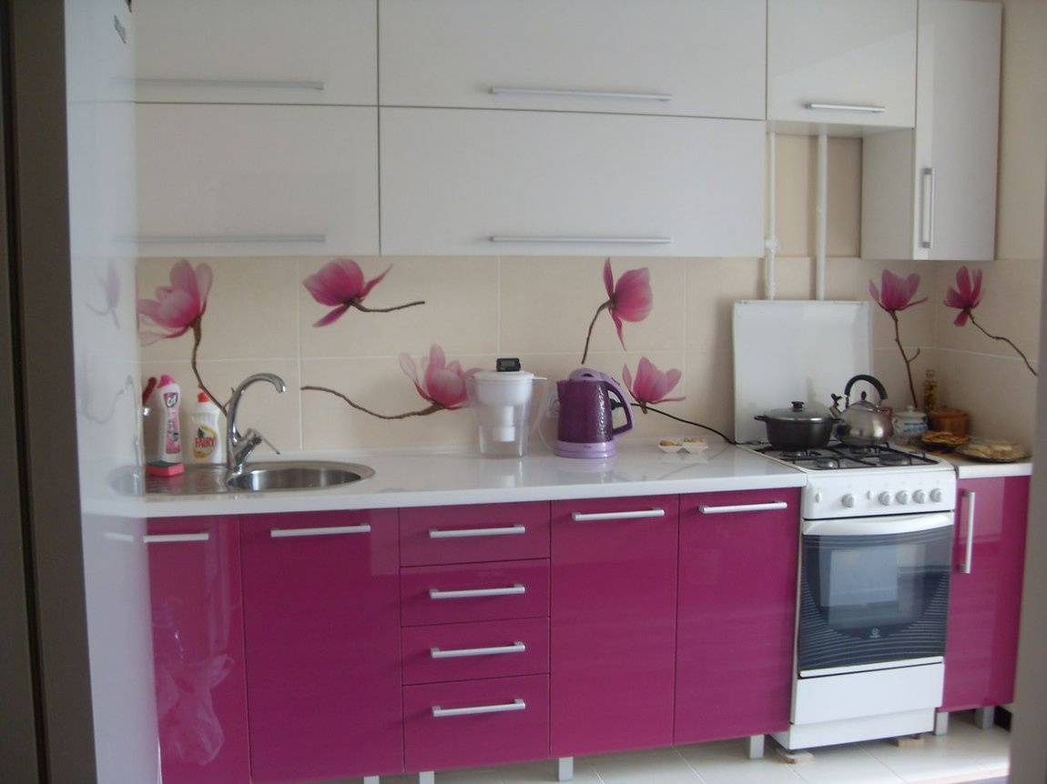 Использование фартуков расширяет вариативные возможности дизайна кухни. Советы специалистов здесь очень разноплановы. Выбором может стать однотонный розовый фартук на кухне. Или, напротив, яркий фееричный цветовой акцент этого элемента внесет свое разнообразие в дизайн помещения.