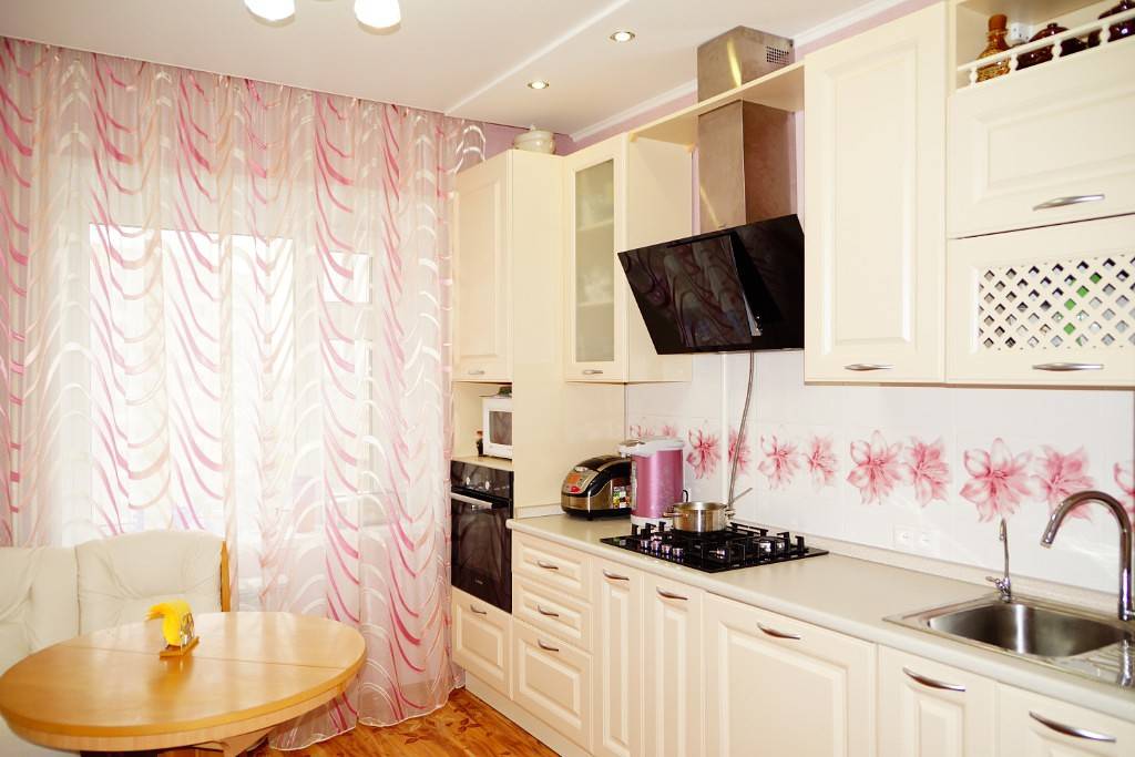 Бежевый цвет просто идеально сочетается со всеми оттенками розового, поэтому данную комбинацию можно смело назвать наиболее выигрышной для обустройства интерьера кухни.