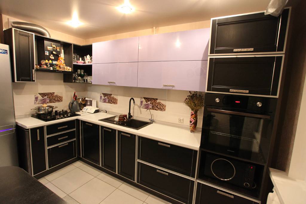 Для обустройства помещения в 10 кв. метров рекомендуется использовать вместительные гарнитуры, желательно со встроенной бытовой техникой. Наиболее оптимальный вариант — Г-образная планировка, которая подойдет каждой кухне. Следует позаботиться о том, чтобы она была достаточно высокой, так в ней появится больше места для хранения различной кухонной утвари.
