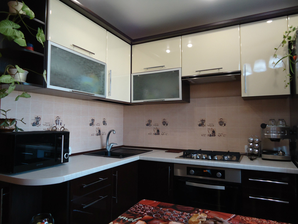 Проект кухни ограниченных размеров заранее обречен на провал, если не применять в дизайне современные идеи. Особенно это касается выбора материалов и рисунков для отделки. Один неверный шаг и маленькое помещение визуально сузится, раздробится.