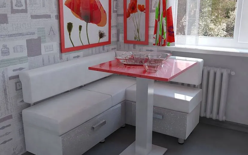 Стильно смотрится в маленьких кухнях и диванчики, но при их размещении важно учитывать то, что такая мебель займет много полезной площади. Для экономии площади следует покупать компактные мягкие уголки, которые предназначены еще и для хранения кухонных принадлежностей