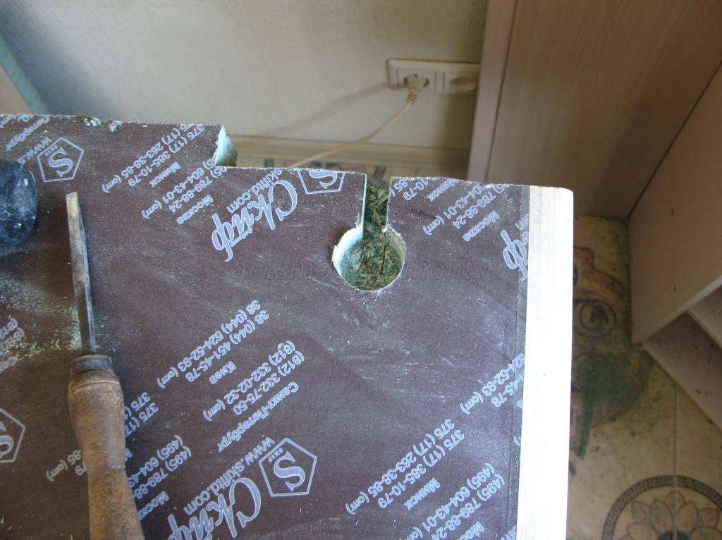 - выпиливаем отверстия электролобзиком и подгоняем размеры при помощи стамески;