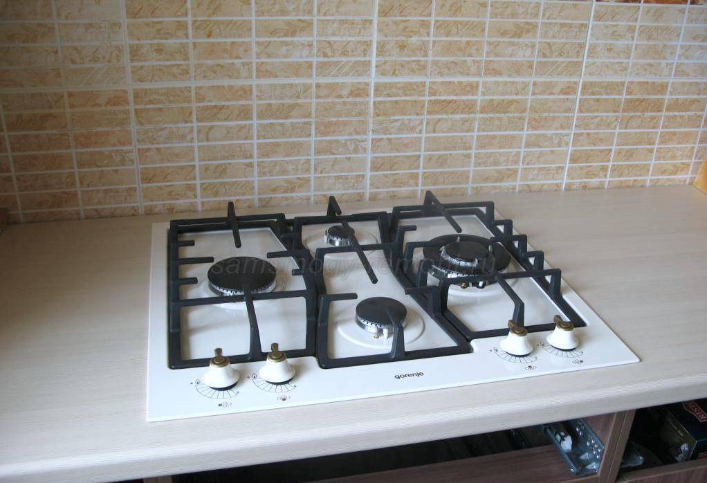 Устанавливаем и подключаем варочную поверхность. Ничего сложного, все достаточно четко описано в прилагаемой инструкции. У варочной фирмы Gorenie, есть два способа крепления устройства к столешнице: мини кронштейны с фиксацией саморезами и клинья. Мне достались клинья, которые на мой взгляд надо назвать “без права на ошибку”, так как при установке поверхность вдавливается до упора. Обратно ее уже не вынуть – клинья работают по принципу рыболовного крючка.