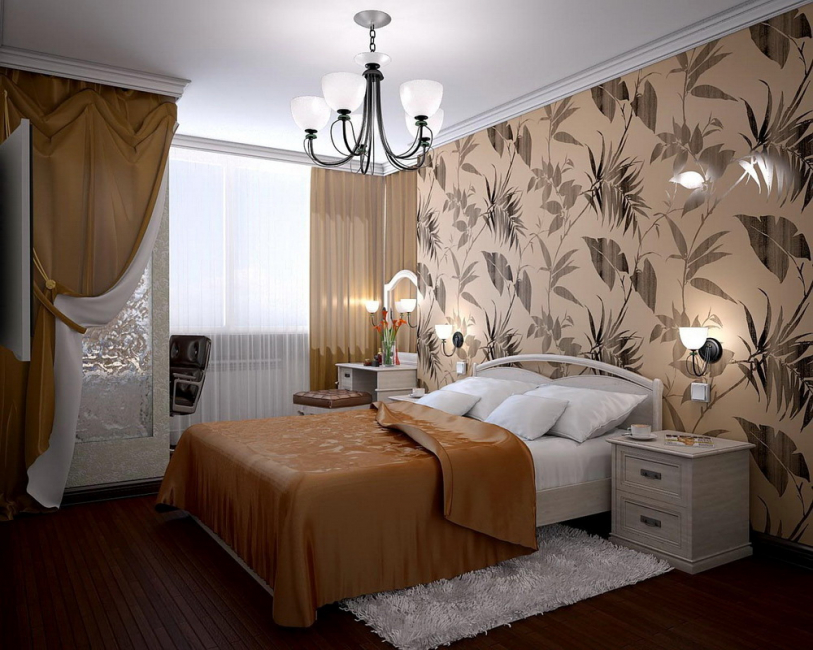 Основным атрибутом спальни является кровать, поэтому при выборе какой-либо части дизайна комнаты необходимо учитывать особенности выбранной модели. Если у него мягкая задняя часть, ничего страшного, если с ней сочетаются обои, получается удачное сочетание.