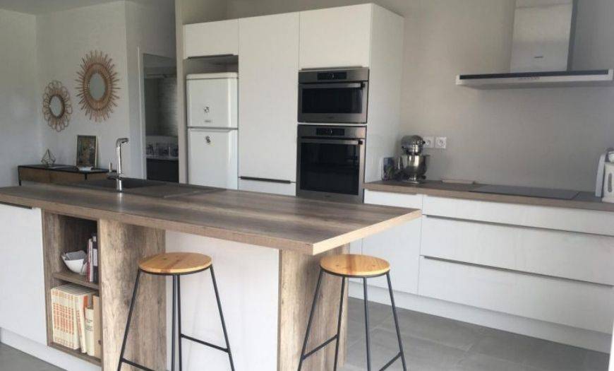 Таким образом, белая кухня с деревянными фасадами отлично впишется в любой стиль интерьера.