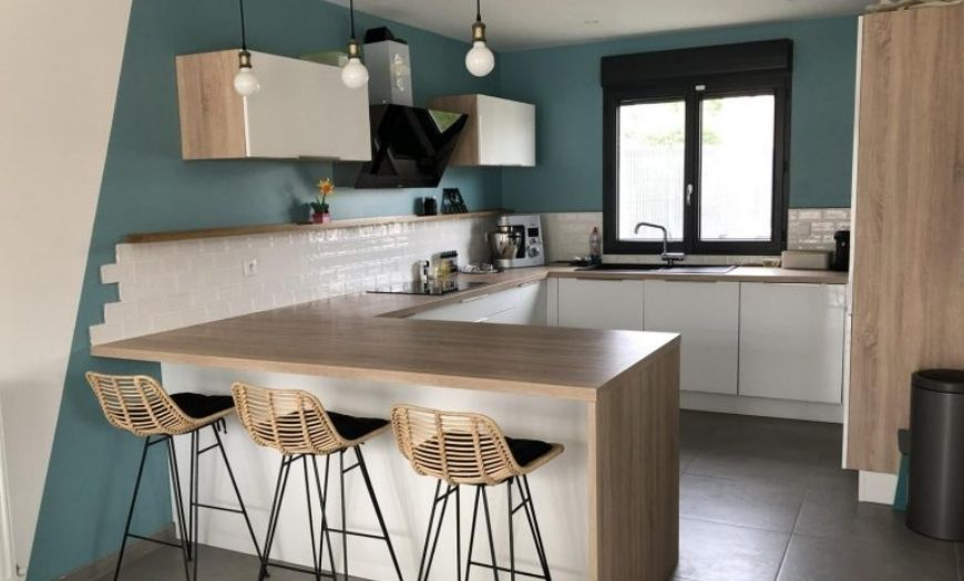 Если не отходить от канонов скандинавского стиля, остаётся только сделать кухню углом, организовав паркинг для техники и утвари: