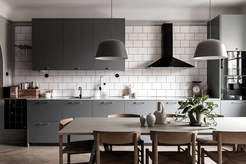 Серая кухня в скандинавском стиле