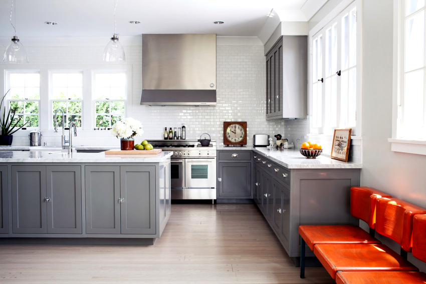 Угадайте, с какими другими цветами в интерьере кухни сочетается серый: