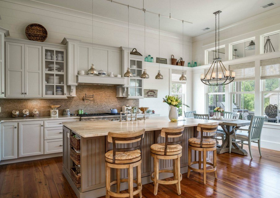 Он отличается лаконичностью, легкостью, теплотой и уютом. Для дизайна помещения в средиземноморском стиле характерны натуральные материалы, светлые краски с небольшим количеством ярких оттенков. Здесь будет уместной прямоугольная барная стойка, которая может стать дополнительной рабочей поверхностью, где будут размещены ваза для фруктов, хлебница или чайник.