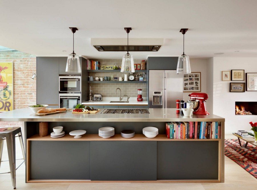 Правильно оборудованная островная конструкция может быть оснащена мойкой, варочной поверхностью, вытяжкой. Это потребует определенных затрат времени и финансов. Но окончательный вариант кухни будет значительно превосходить многие другие дизайнерские решения.