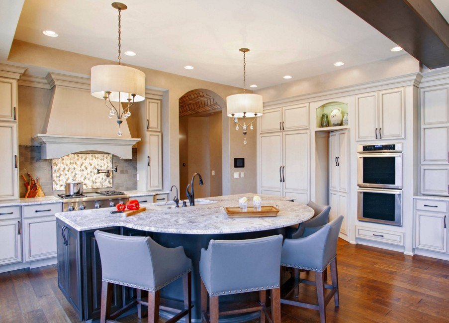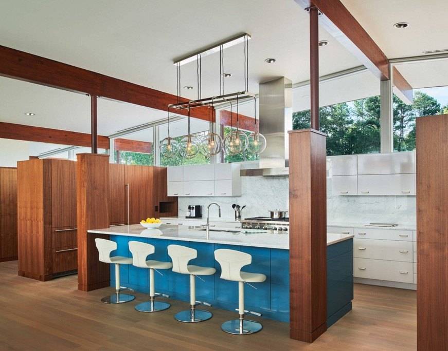 На большой кухне есть где разгуляться. Самым лучшим решением, конечно, станет стойка-остров. Ее функционал может быть абсолютно разным: