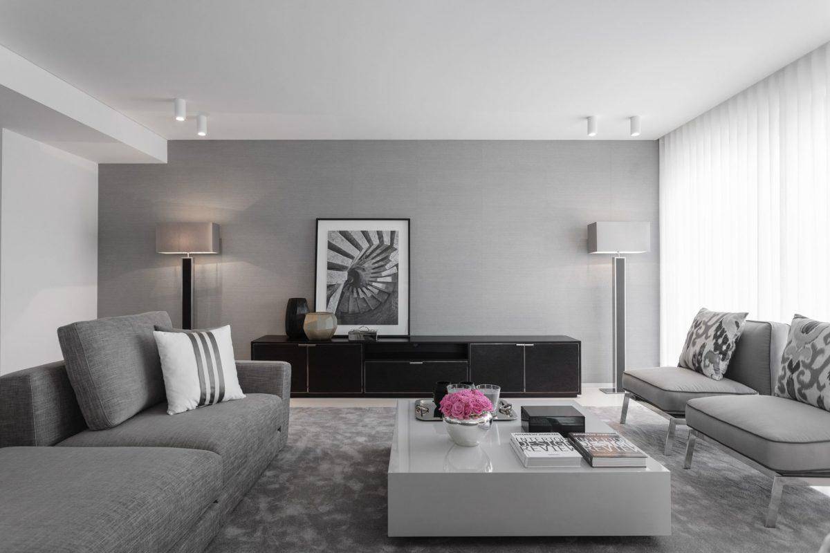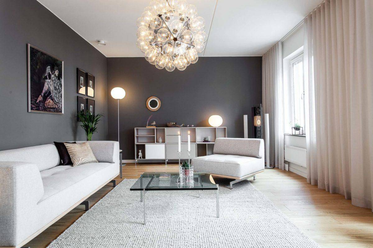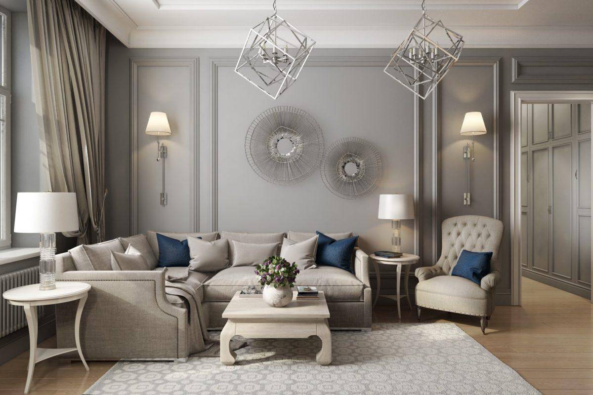 Серый цвет дивана в интерьере гостиной