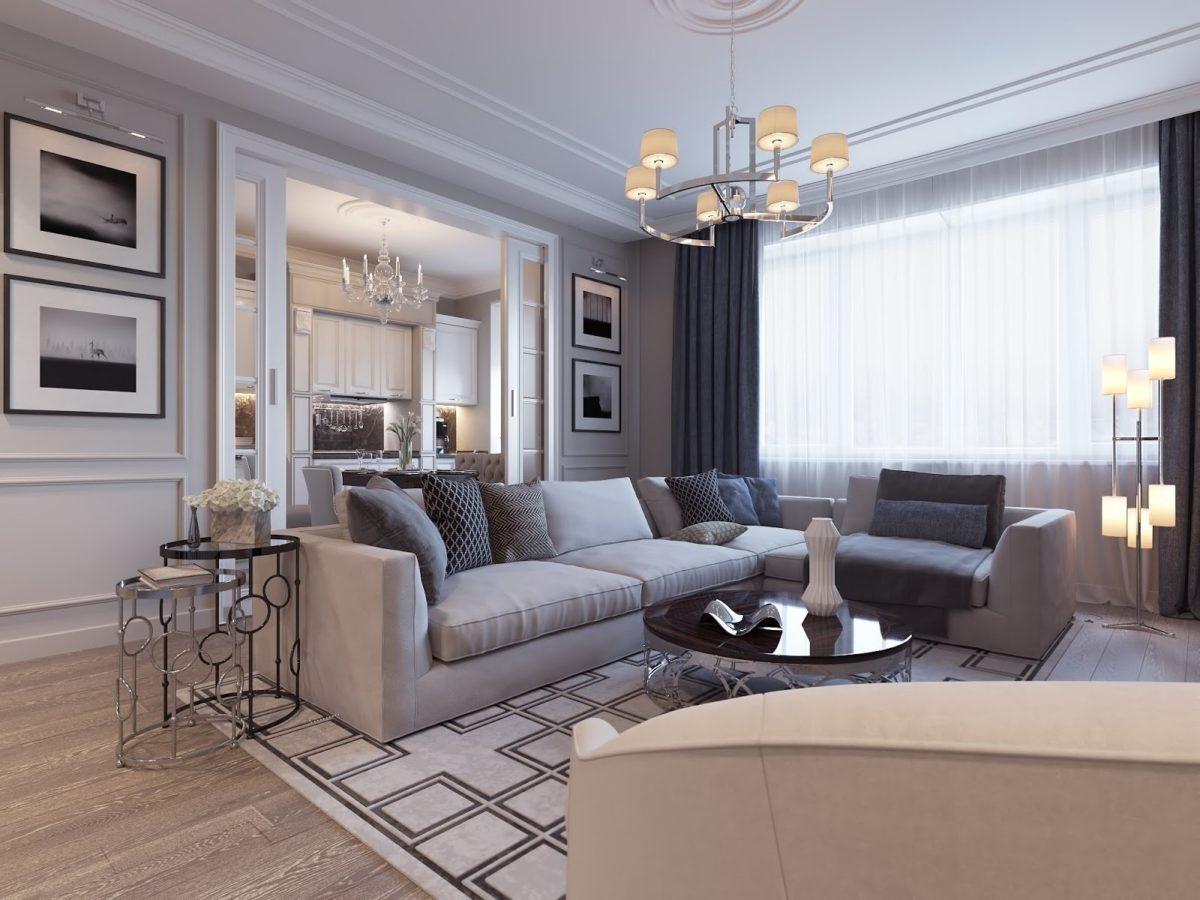 Многие предпочитают выбирать серый цвет для оформления гостиной, поскольку он создает уютную и спокойную атмосферу в комнате