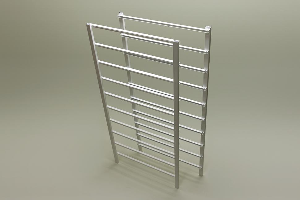- сталь – дешевый и доступный материал. Она чаще всего используется при изготовлении гардеробных данного вида. Стальные детали обрабатываются многофункциональными эпоксидными порошковыми красками, что придает им приятный внешний вид. Кроме того, такое покрытие отлично защищает части гардеробной от коррозии. Этот материал не представляет опасности организму человека. Однако, не все производители используют качественные покрытия, что может привести к коррозии стали. Если на поверхность детали без покрытия попадет влага, то там образуется ржавчина, так что вещи рискуют быть испорченными. Сталь имеет такое свойство, как сохранять крепость изделия даже если в нем образовался разлом или трещина. Проще говоря, если какая-то из частей системы треснула, но не разорвалась полностью, то она может прослужить еще долгое время;