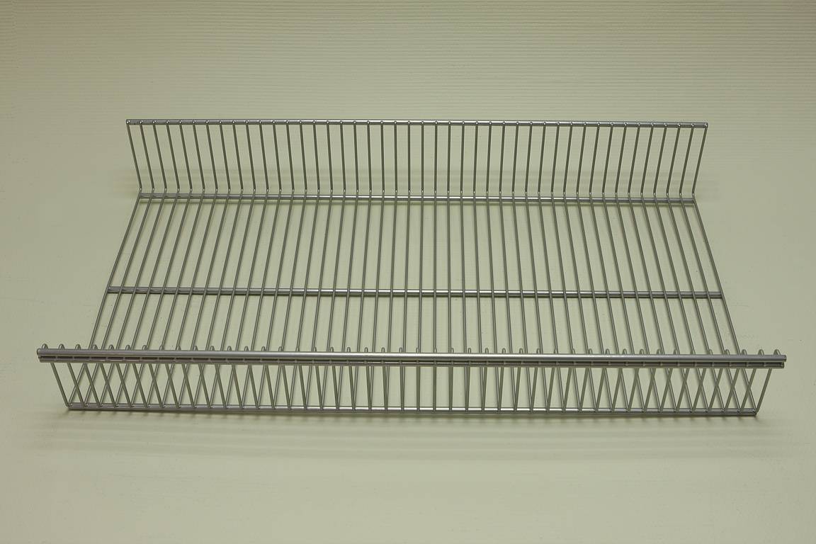 Проволочная полка закрепляется на кронштейны. Проволочные полки выпускают глубиной 30, 40, 50 см и шириной 60, 90, 121, 181 см.