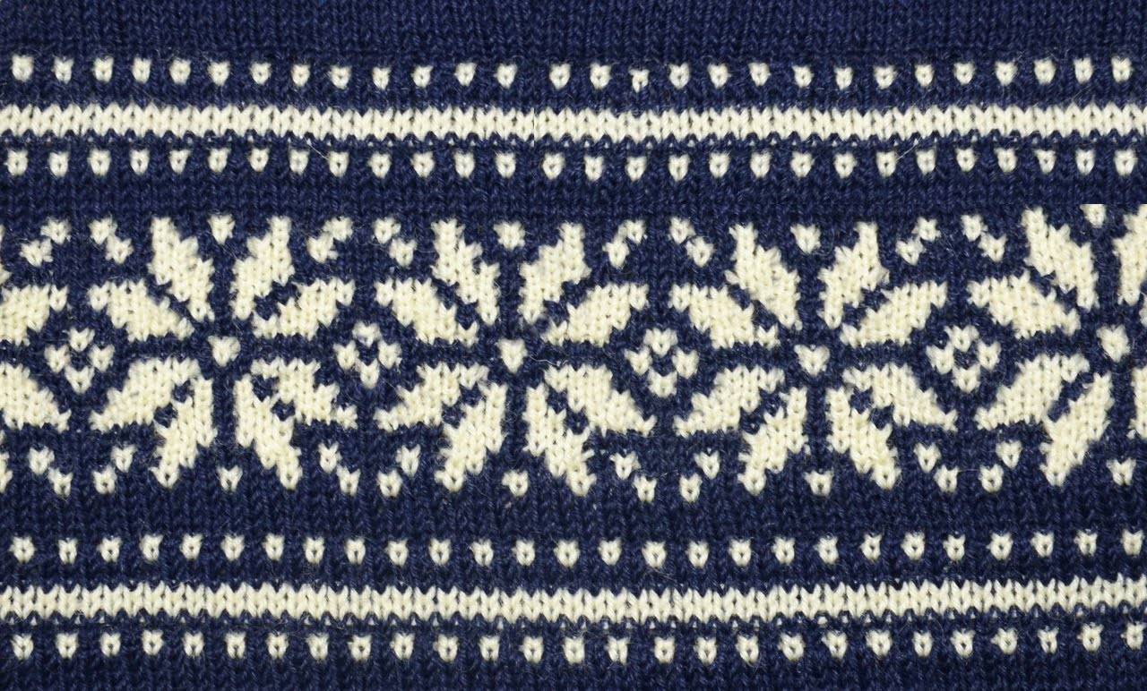 Ленивый жаккардовый узор выполняется спицами. При вязании одного ряда используются нитки двух и более цветов. Узор в скандинавском этно стиле вывязывается гладью, используя счетные схемы, которые иллюстрируют изнаночную и лицевую сторону. Лицевой ряд считается справа налево, изнаночный — слева направо. При вязании используется основная и дополнительная нить, поэтому все петли не стягиваются протяжками.