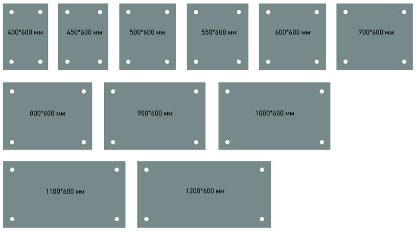 Схема размещения нескольких стеклянных панелелей на рабочей стене кухни