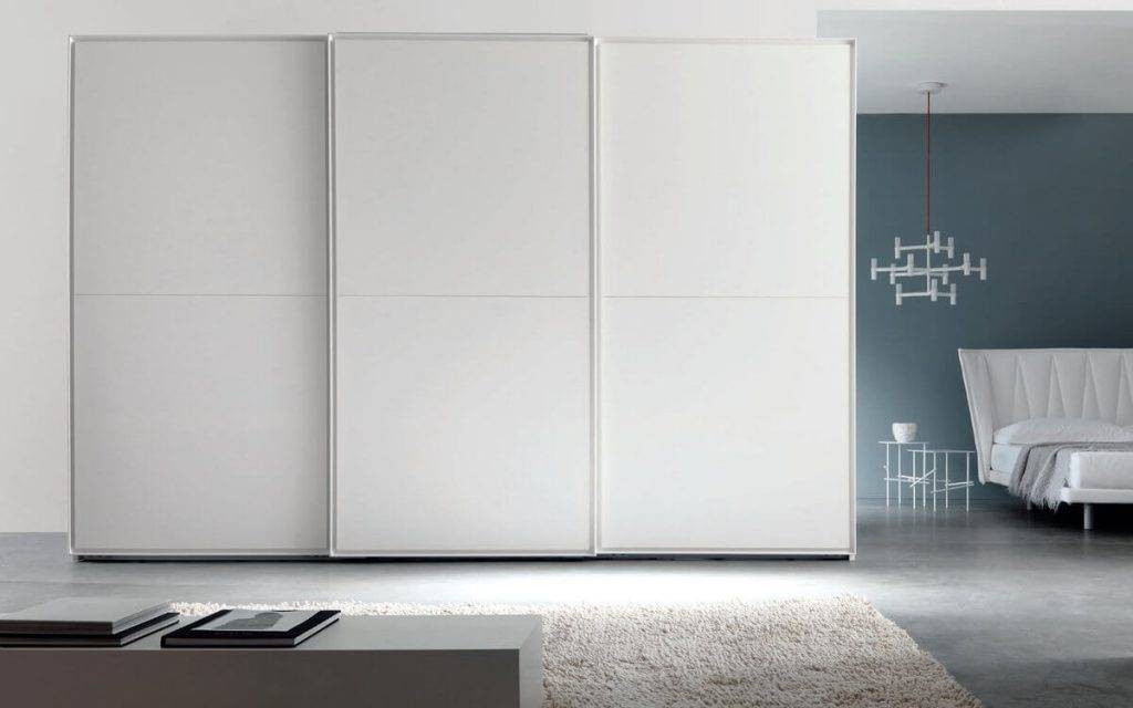Принцип действия раздвижных фасадов основан на использовании направляющих, которые обеспечивают доступ к внутреннему пространству без выдвигания дверного полотна за пределы фасада — одна дверная створка заезжает за вторую. Экономия пространства – ключевое преимущество раздвижных систем. Однако купейные двери не лишены недостатков, из-за особенностей конструкции открыть одновременно весь фасад не представляется возможным. Распашные механизмы открывания могут применяться в угловых и линейных конструкциях навесных и напольных тумб.