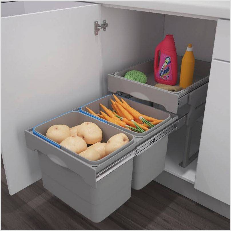 Сохранять во вмонтированных контейнерах свежие растительные продукты следует лишь к примеру, если ящик считается частью специализированной кострукции кухни, имеющей охлаждение и вентиляцию.