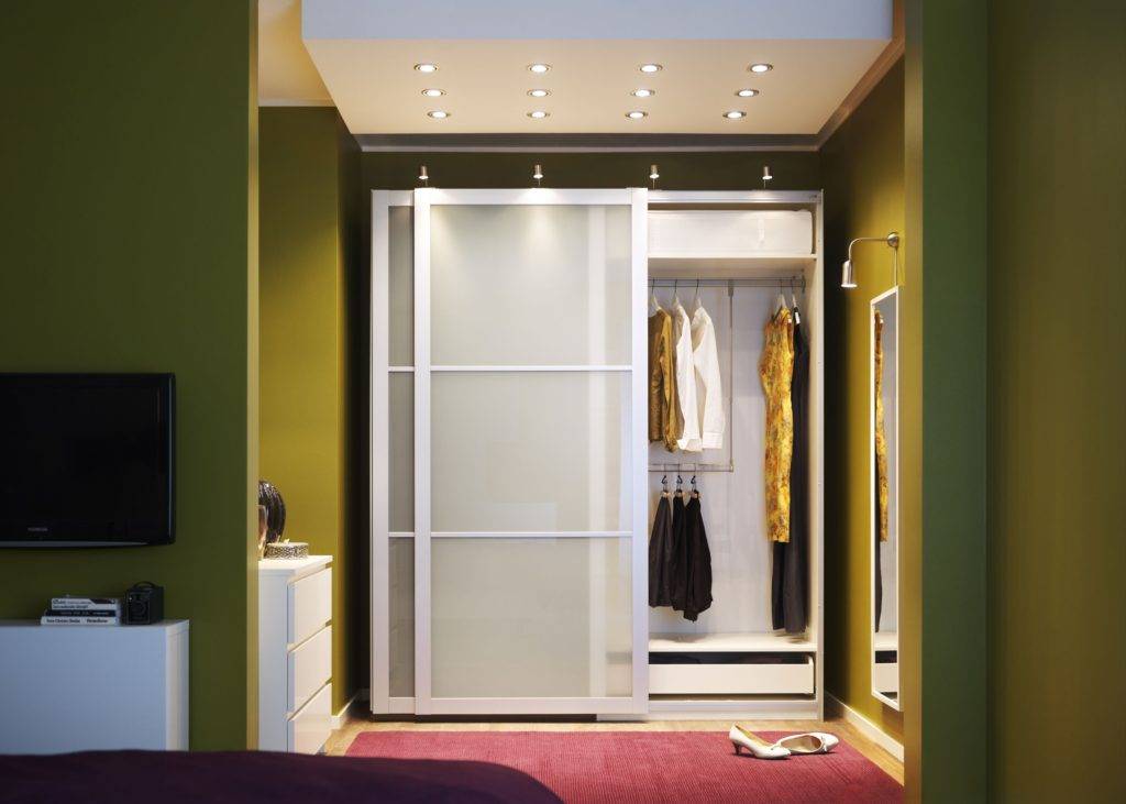 - В угловых конструкциях иногда не бывает задней стены, в качестве нее может использоваться стенка коридора. Кроме того, бывают встроенные модели, которые состоят из раздвижной системы, а роль крыши выполняет потолок. Корпусные изделия оборудованы всеми стенками, крышей и днищем, поэтому их можно передвигать по комнате.