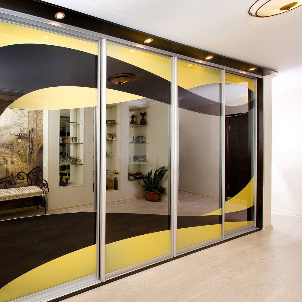 Во втором варианте используется зеркальная фактура для дверей на одной створке, а вторая в противовес сделана матовой с нанесенным рисунком