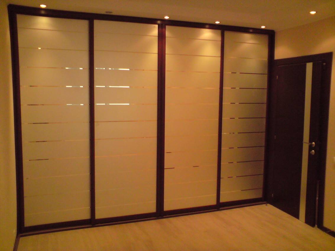 - также для фасада гардеробной применяют полупрозрачные панели, которые создают впечатление просторности помещения. Не обходят дизайнеры стороной и фасады из закаленного лакированного стекла;