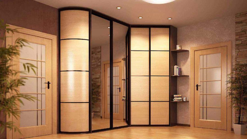 Форма шкафа напрямую зависит от формы прихожей, количества углов и длины. Наиболее популярными формами выступают трапециевидная и Г-образная форма. Угловые шкафы могут быть выпуклыми, вогнутыми иметь обтекаемые края и так далее.
